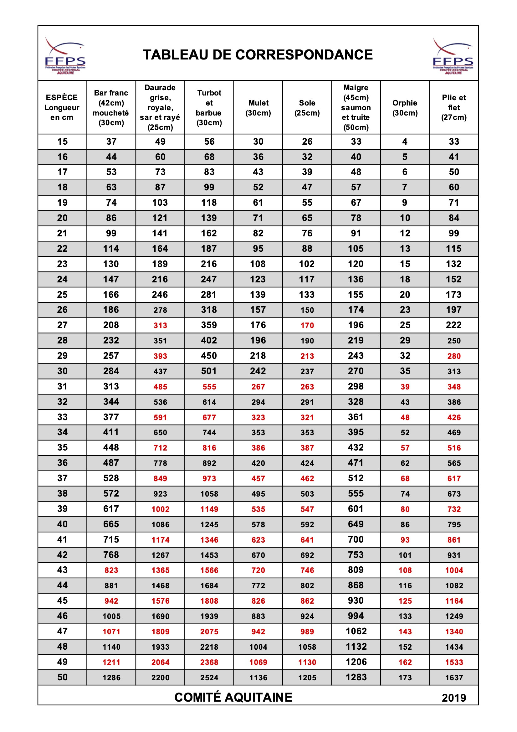 Aplm Surfcasting Vendays Montalivet Tableau Conv Taille Poids