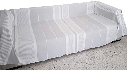 Magie Du Monde Fouta Xxl 100 Coton Gris Clair Raye Blanc 3x2m Plaid Canape Ou Jete De Lit Amazon Fr Cuisine Maison